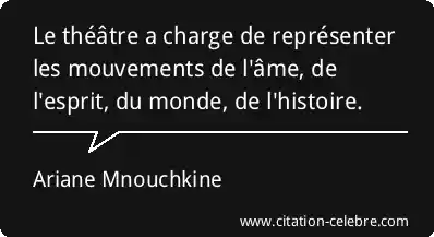 Le théâtre a charge de représenter les mouvements de l'âme, de l'esprit, du monde, de l'histoire.