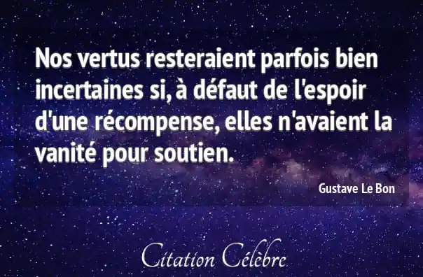 Nos vertus resteraient parfois bien incertaines si, à défaut de l'espoir d'une récompense, elles n'avaient la vanité pour soutien.