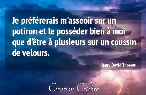 Je préférerais m'asseoir sur un potiron et le posséder bien à moi que d'être à plusieurs sur un coussin de velours.