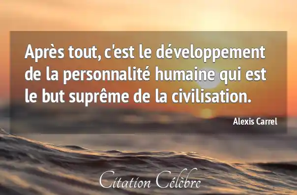 Après tout, c'est le développement de la personnalité humaine qui est le but suprême de la civilisation.