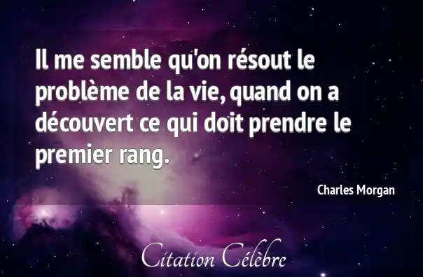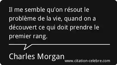 Il me semble qu'on résout le problème de la vie, quand on a découvert ce qui doit prendre le premier rang.