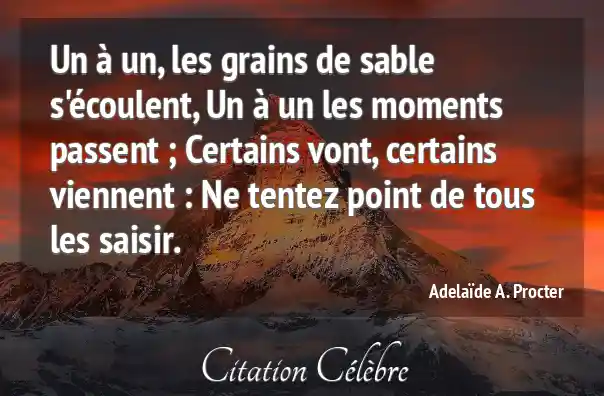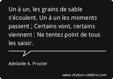 Un à un, les grains de sable s'écoulent, Un à un les moments passent ; Certains vont, certains viennent : Ne tentez point de tous les saisir.