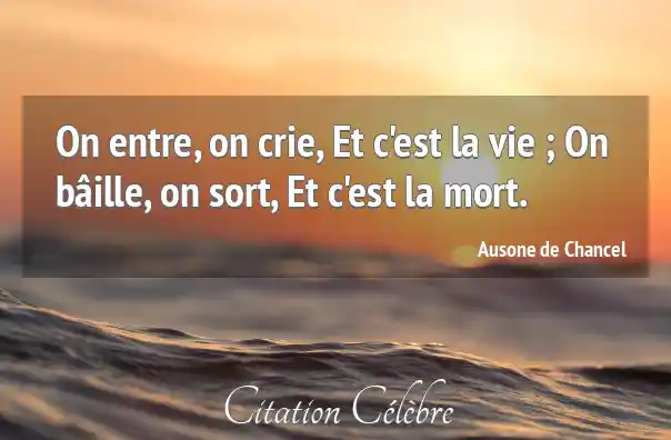 On entre, on crie, Et c'est la vie ; On bâille, on sort, Et c'est la mort.