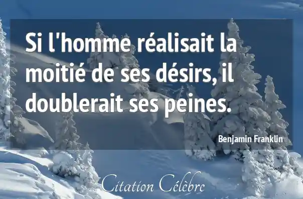 Si l'homme réalisait la moitié de ses désirs, il doublerait ses peines.
