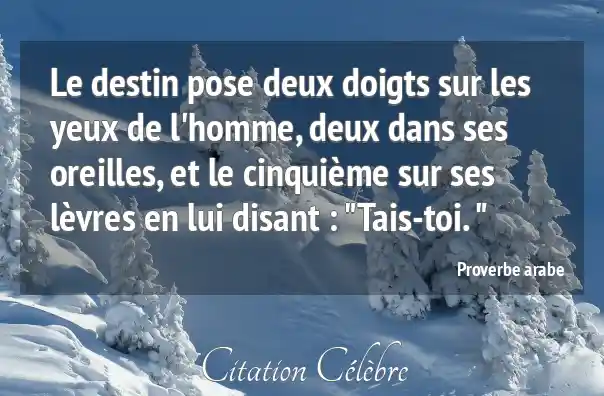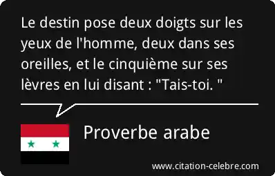 Le destin pose deux doigts sur les yeux de l'homme, deux dans ses oreilles, et le cinquième sur ses lèvres en lui disant : "Tais-toi. "