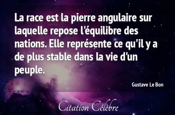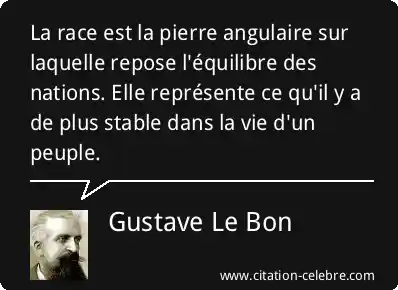 La race est la pierre angulaire sur laquelle repose l'équilibre des nations. Elle représente ce qu'il y a de plus stable dans la vie d'un peuple.