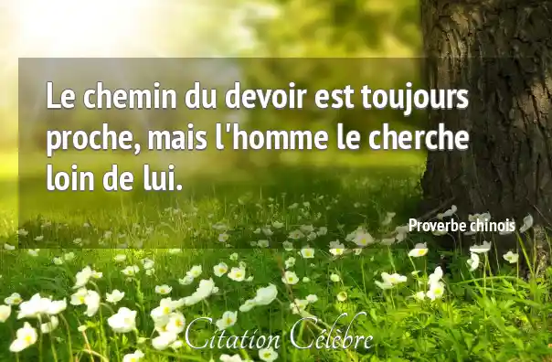 Proverbe  Chinois Homme : Le chemin du devoir est toujours proche, mais l'homme le...