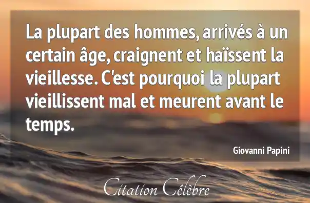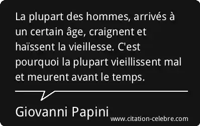 La plupart des hommes, arrivés à un certain âge, craignent et haïssent la vieillesse. C'est pourquoi la plupart vieillissent mal et meurent avant le temps.