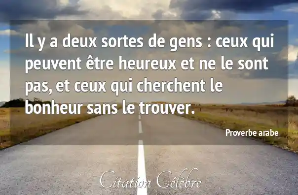 Il y a deux sortes de gens : ceux qui peuvent être heureux et ne le sont pas, et ceux qui cherchent le bonheur sans le trouver.