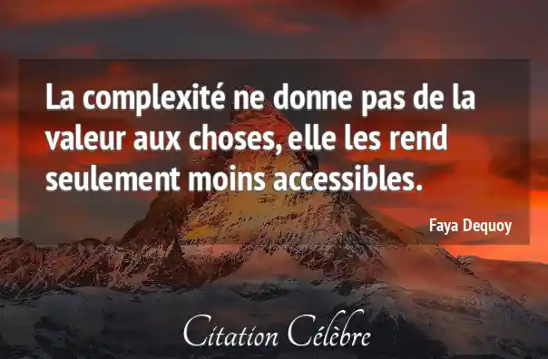 La complexité ne donne pas de la valeur aux choses, elle les rend seulement moins accessibles.