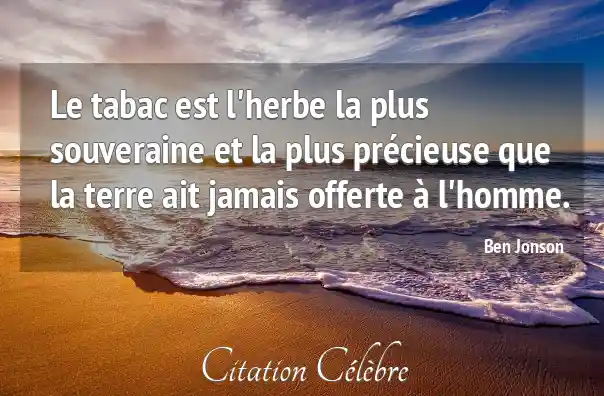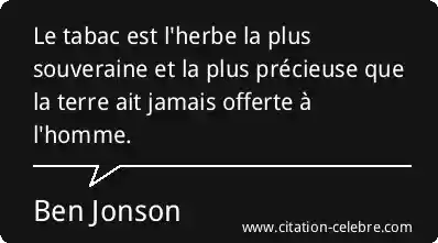 Le tabac est l'herbe la plus souveraine et la plus précieuse que la terre ait jamais offerte à l'homme.