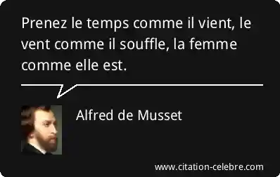 Prenez le temps comme il vient, le vent comme il souffle, la femme comme elle est.