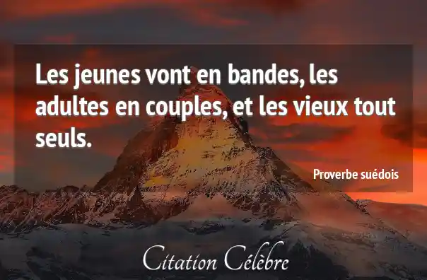 Proverbe  Suédois Vieux : Les jeunes vont en bandes, les adultes en couples, et...