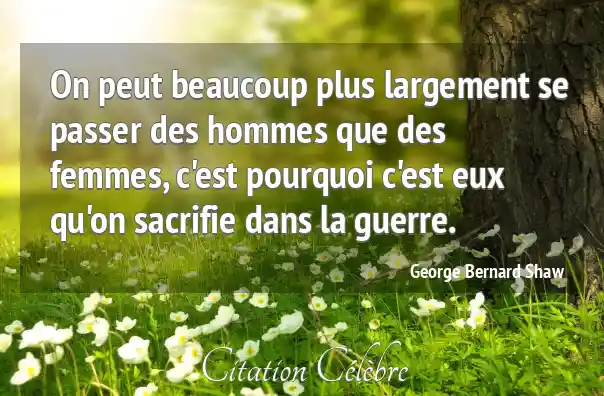 On peut beaucoup plus largement se passer des hommes que des femmes, c'est pourquoi c'est eux qu'on sacrifie dans la guerre.