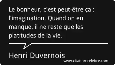 Le bonheur, c'est peut-être ça : l'imagination. Quand on en manque, il ne reste que les platitudes de la vie.