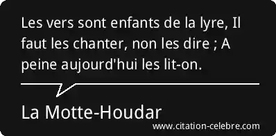 Les vers sont enfants de la lyre, Il faut les chanter, non les dire ; A peine aujourd'hui les lit-on.