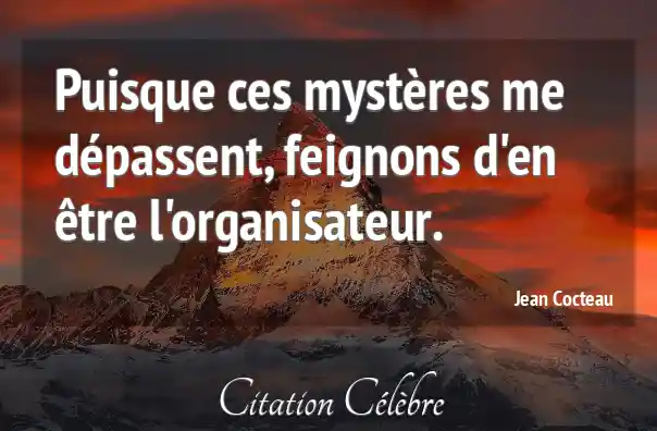 Puisque ces mystères me dépassent, feignons d'en être l'organisateur.