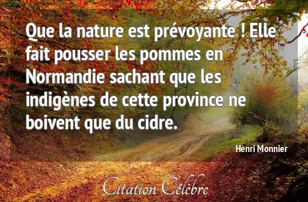 Que la nature est prévoyante ! Elle fait pousser les pommes en Normandie sachant que les indigènes de cette province ne boivent que du cidre.