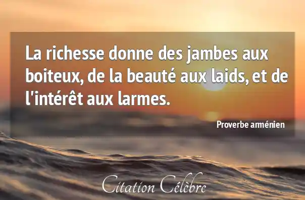 La richesse donne des jambes aux boiteux, de la beauté aux laids, et de l'intérêt aux larmes.