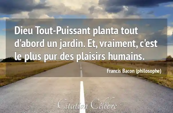 Dieu Tout-Puissant planta tout d'abord un jardin. Et, vraiment, c'est le plus pur des plaisirs humains.