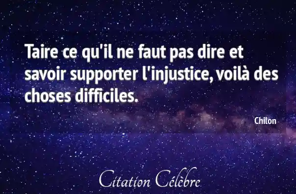 Taire ce qu'il ne faut pas dire et savoir supporter l'injustice, voilà des choses difficiles.