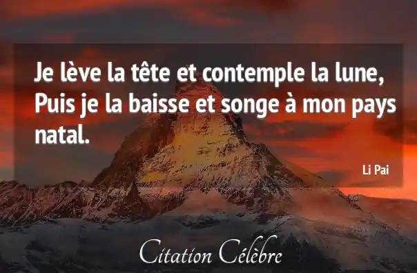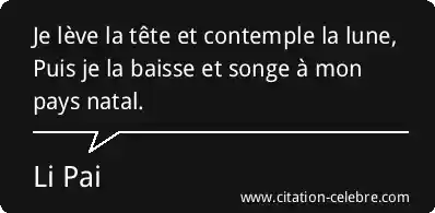 Je lève la tête et contemple la lune, Puis je la baisse et songe à mon pays natal.