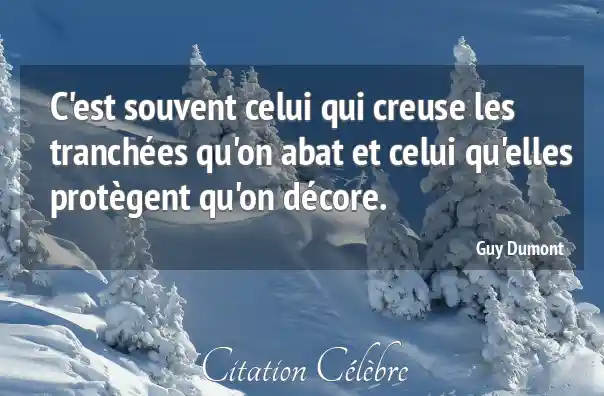 C'est souvent celui qui creuse les tranchées qu'on abat et celui qu'elles protègent qu'on décore.