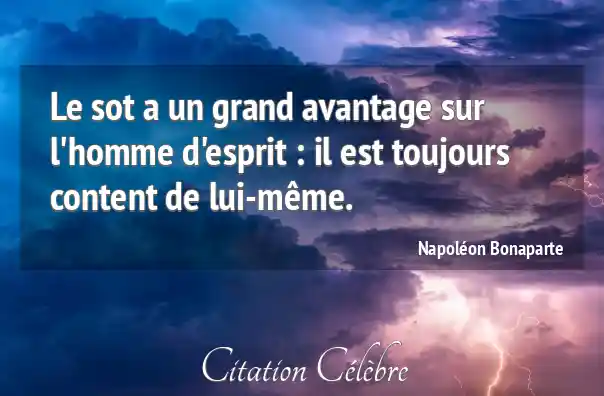 Le sot a un grand avantage sur l'homme d'esprit : il est toujours content de lui-même.