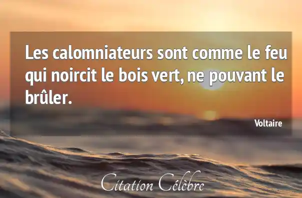 Les calomniateurs sont comme le feu qui noircit le bois vert, ne pouvant le brûler.