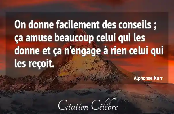 On donne facilement des conseils ; ça amuse beaucoup celui qui les donne et ça n'engage à rien celui qui les reçoit.