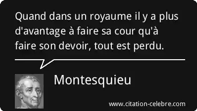 Quand dans un royaume il y a plus d'avantage à faire sa cour qu'à faire son devoir, tout est perdu.