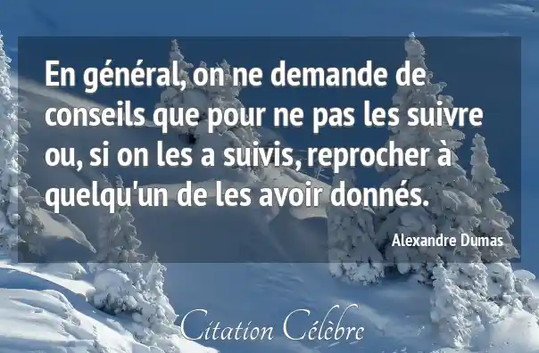 En général, on ne demande de conseils que pour ne pas les suivre ou, si on les a suivis, reprocher à quelqu'un de les avoir donnés.