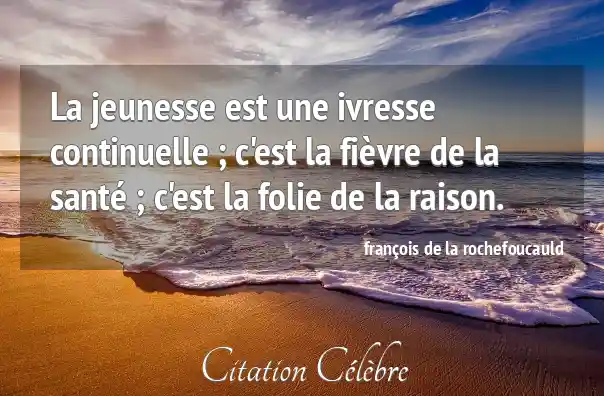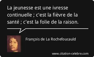 Citation François de La Rochefoucauld sante : La jeunesse est une ivresse continuelle ; c'est la fièvre...