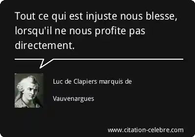 Tout ce qui est injuste nous blesse, lorsqu'il ne nous profite pas directement.