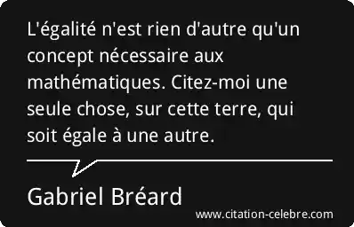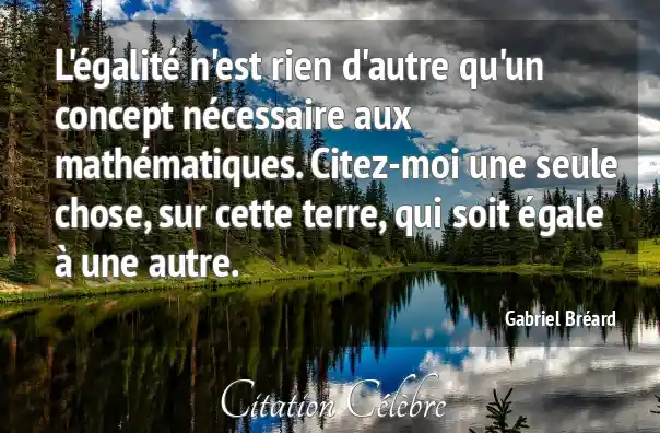 L'égalité n'est rien d'autre qu'un concept nécessaire aux mathématiques. Citez-moi une seule chose, sur cette terre, qui soit égale à une autre.