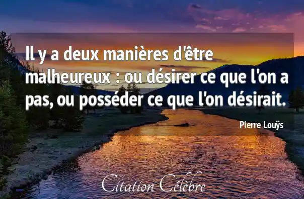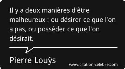 Il y a deux manières d'être malheureux : ou désirer ce que l'on a pas, ou posséder ce que l'on désirait.
