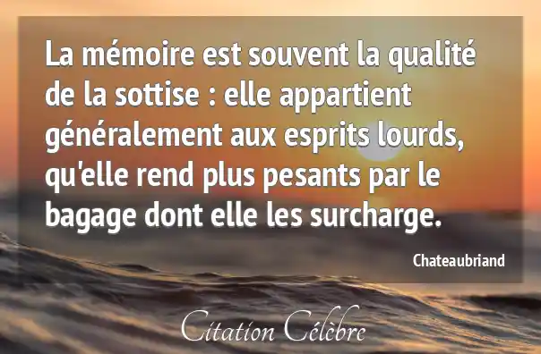La mémoire est souvent la qualité de la sottise : elle appartient généralement aux esprits lourds, qu'elle rend plus pesants par le bagage dont elle les surcharge.