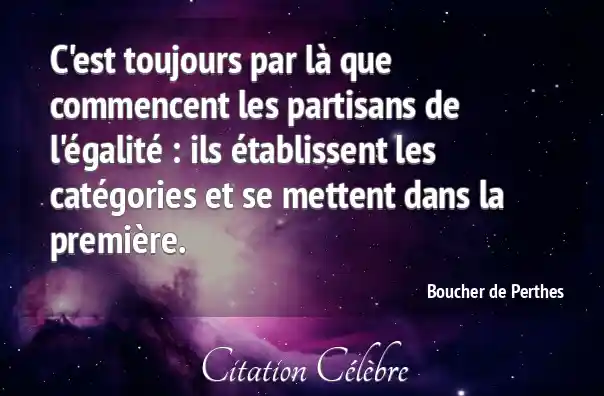 C'est toujours par là que commencent les partisans de l'égalité : ils établissent les catégories et se mettent dans la première.
