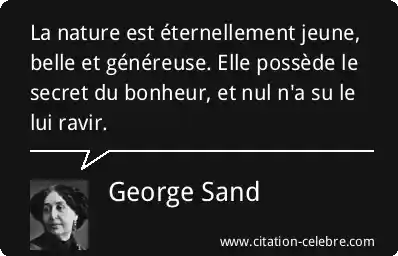 La nature est éternellement jeune, belle et généreuse. Elle possède le secret du bonheur, et nul n'a su le lui ravir.