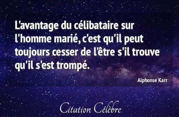 L'avantage du célibataire sur l'homme marié, c'est qu'il peut toujours cesser de l'être s'il trouve qu'il s'est trompé.