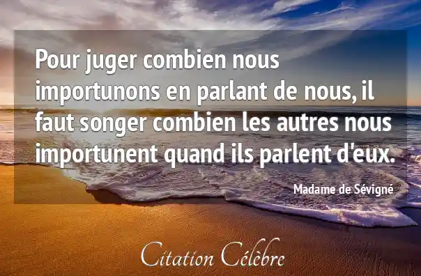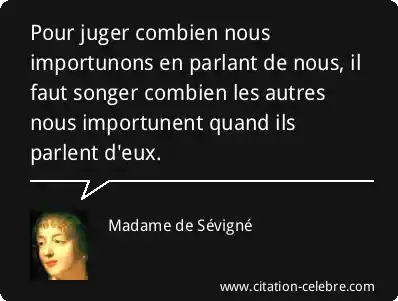 Citation Madame de Sévigné autres : Pour juger combien nous importunons en parlant de nous, il...