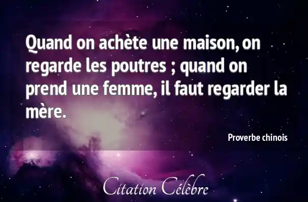 Quand on achète une maison, on regarde les poutres ; quand on prend une femme, il faut regarder la mère.