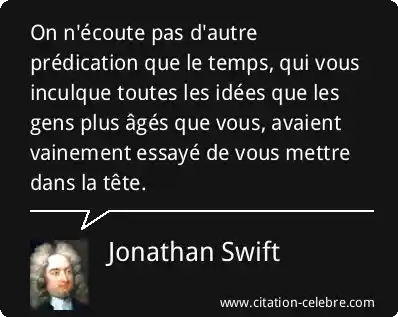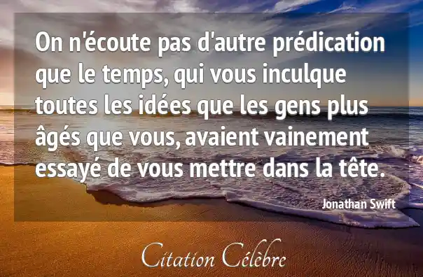 On n'écoute pas d'autre prédication que le temps, qui vous inculque toutes les idées que les gens plus âgés que vous, avaient vainement essayé de vous mettre dans la tête.