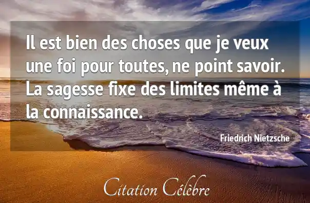 Il est bien des choses que je veux une foi pour toutes, ne point savoir. La sagesse fixe des limites même à la connaissance.