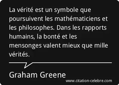 La vérité est un symbole que poursuivent les mathématiciens et les philosophes. Dans les rapports humains, la bonté et les mensonges valent mieux que mille vérités.