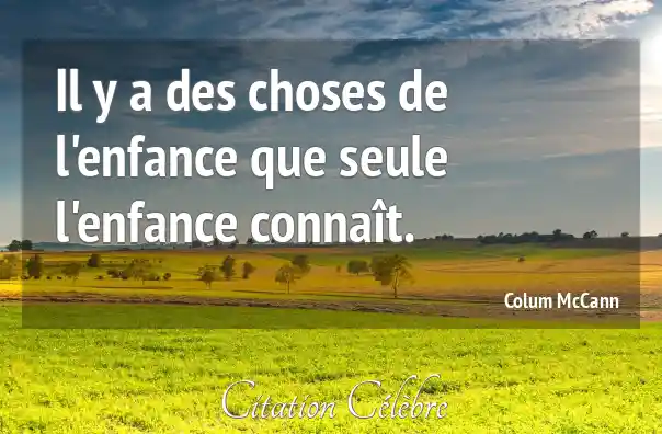 Il y a des choses de l'enfance que seule l'enfance connaît.