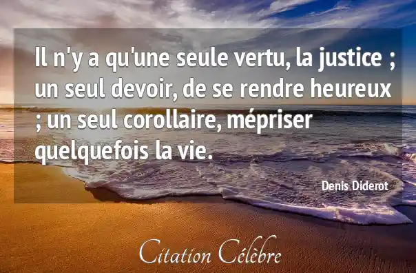 Il n'y a qu'une seule vertu, la justice ; un seul devoir, de se rendre heureux ; un seul corollaire, mépriser quelquefois la vie.