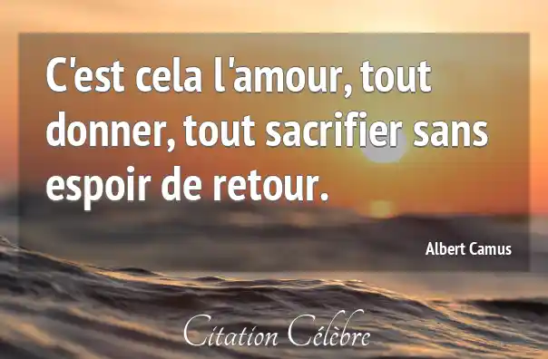 C'est cela l'amour, tout donner, tout sacrifier sans espoir de retour.