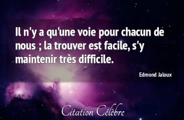 Il n'y a qu'une voie pour chacun de nous ; la trouver est facile, s'y maintenir très difficile.