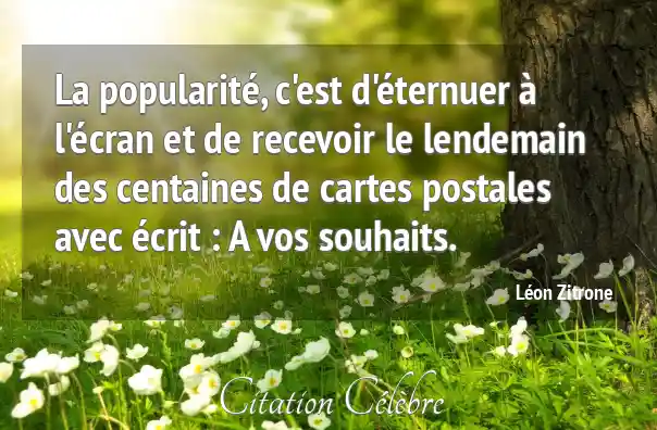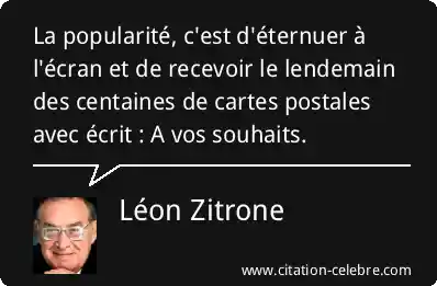 La popularité, c'est d'éternuer à l'écran et de recevoir le lendemain des centaines de cartes postales avec écrit : A vos souhaits.